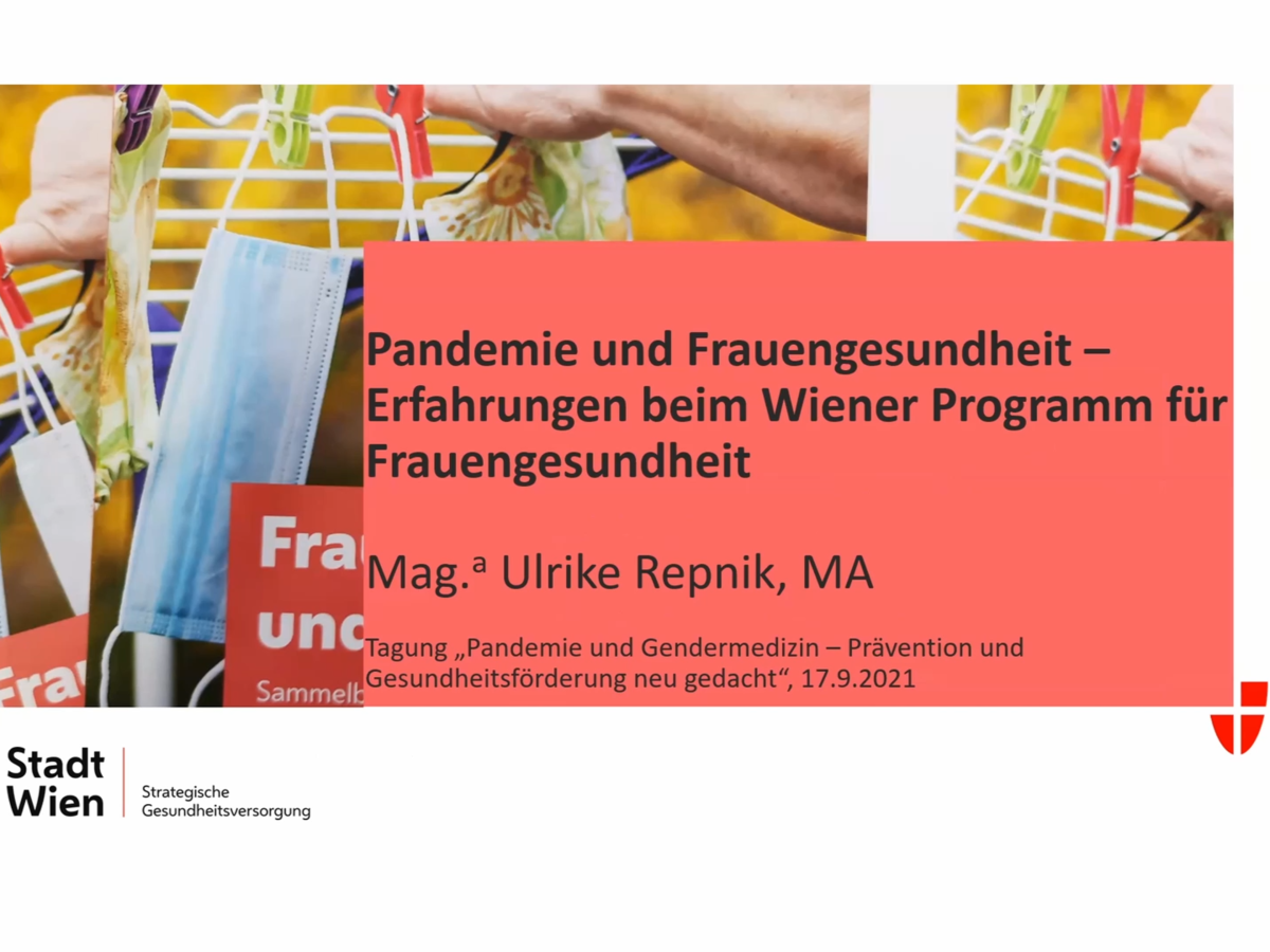 17.09.2021 Pandemie und Frauengesundheit - Erfahrungen beim Wiener Frauengesundheitsprogramm Vortrag von Mag.a Ulrike Repnik, MA (Wien) im Rahmen der internationalen Fachtagung: Pandemie und Gender Medizin: Prävention und Gesundheitsförderung…weiterlesen