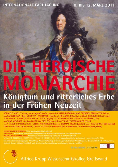 „Ritter“ hat die Geschichtswissenschaft seit jeher gerade unter Kaisern und Königen ausgemacht, in der Frühen Neuzeit vorzugsweise „letzte Ritter“. Diese Tagung soll Formen und Wandlungen der ritterlich-heroischen Selbststilisierung der europäischen Monarchie zwischen Vergangenheitsorientierung und Anpassungsnotwendigkeit herausarbeiten. Ihren Ausgangspunkt findet sie bei den „ewigen“ literarischen Vorbildern des Rittertums – auch und gerade in seiner „königlichen“ Variante. Ein erster Schwerpunkt liegt bei den gekrönten Rittern der Renaissance. Hierbei geht es jedoch nicht nur um die bekannten westeuropäischen „Modelle“ des Genres, sondern auch um die Aufnahme des Ideals in Nordosteuropa. Gefragt wird aber ebenso nach Gegenmodellen bzw. Alternativen und ebenso nach Krisenmomenten des heroischen Musters. Es wird untersucht, wie verschiedene europäische Dynastien mit dem ritterlichen Erbe der Monarchie umgingen, was jeweils vom miles Christianus blieb. Und es wird insbesondere betrachtet, wie sich militärische Professionalisierung und ritterliches Ideal auf der monarchischen Ebene vertrugen bzw. nicht vertrugen. Der Roi-Chevalier wurde seit dem 17. Jahrhundert zum Roi-Connétable, der nicht nur „Haltung“ zeigte, sondern jederzeit operative wie organisatorische Entscheidungen traf oder zu treffen vorgab. Denn diese Connétablerie war zumeist nur imaginiert, und die Imagination ließ sich mit der zunehmend geforderten militärischen Expertise immer schwerer in Übereinstimmung bringen. Aus dieser Diskrepanz ergibt sich der Blick ins 19. Jahrhundert, in dem die Monarchen tendenziell zu Darstellern oder gar „Militärschauspielern“ wurden, deren Glaubwürdigkeit mal höher ausfallen konnte, mal geringer, und die in einem sehr bezeichnenden Fall, dem Wilhelms II., mit ihren Darstellungen jenseits jeder Glaubwürdigkeit zumindest in Deutschland zur finalen Diskreditierung der Monarchie nicht unwesentlich beitrugen.
