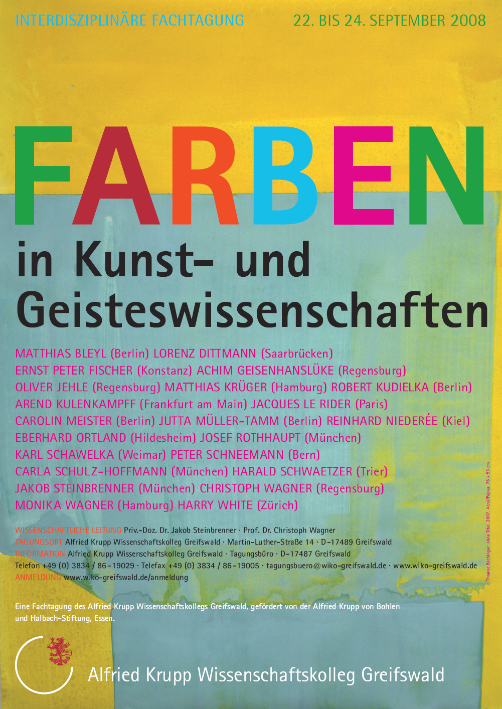 Wie werden Farben als Bedeutungsträger eingesetzt, und wie werden Farben in der Kunst dargestellt? Wie gehen unterschiedliche Disziplinen − seien es Philosophie, Kunstgeschichte oder Literaturwissenschaft, seien es Neurowissenschaften oder Neurophysiologie − mit diesen Fragen um? Und wie lauten ihre Antworten? Ästhetische, poetologische und philosophische Reflexionen der Farbbezogenheit ästhetischer Erfahrung stehen im Zentrum der Tagung: Ohne Bezugnahme auf Farben lassen sich ästhetische Gegenstände weder erfahren noch verstehen. Die Tagung stellt deshalb vielfältige Ansätze und Argumente der Farbforschung vor und hinterfragt sie kritisch.