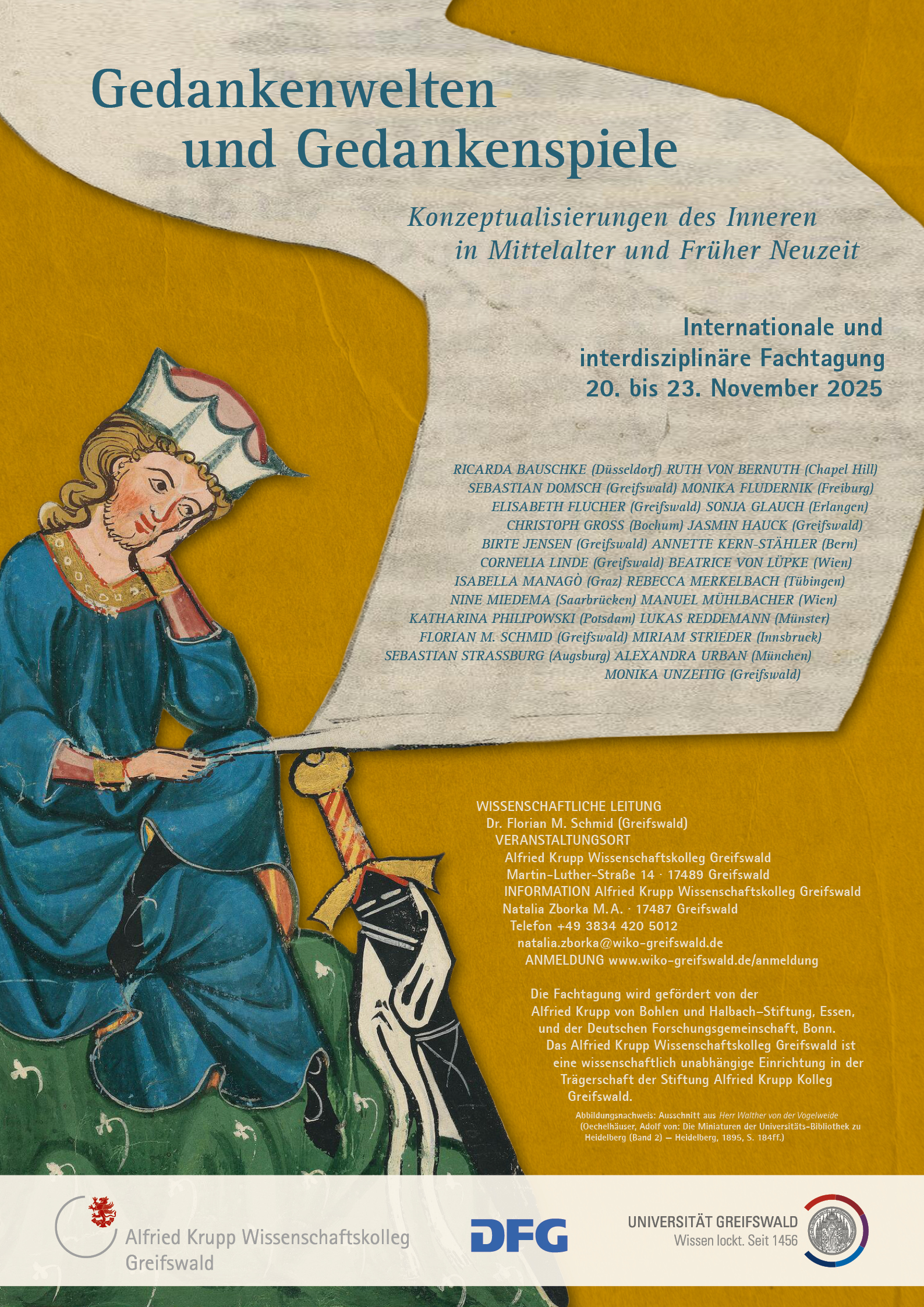 Die internationale Fachtagung befasst sich mit den Techniken, Funktionalisierungen und Ästhetisierungen der narrativen Erzeugung des menschlich Inneren in der europäischen Literatur. Im Mittelpunkt stehen seine Konstitution, Imagination, Reflexion und Zeichenhaftigkeit in mittelalterlichen und frühneuzeitlichen Kulturen. Ziel ist es, die beobachteten Phänomene in ihren Besonderheiten und Gemeinsamkeiten transdisziplinär und über Sprachgrenzen hinweg zu erfassen, zu beschreiben und systematisch einzuordnen, indem Perspektiven verschiedener europäischer Literaturen bzw. Literaturwissenschaften zusammengeführt, vernetzt und akzentuiert werden.
