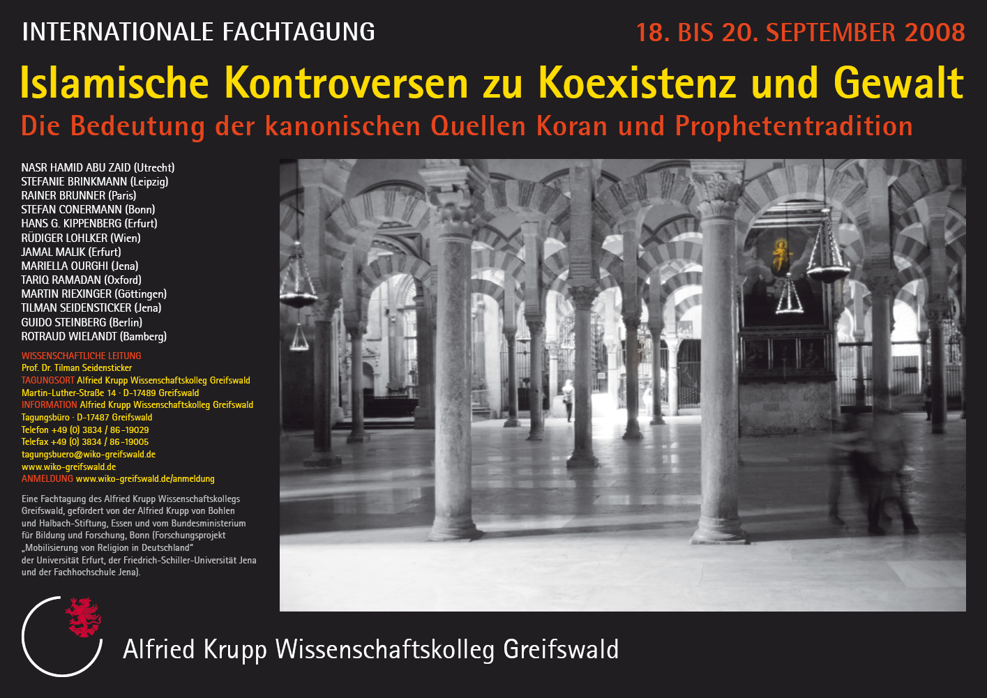 Das Zusammenleben von Muslimen und Nicht-Muslimen und die Anwendung von Gewalt durch islamistische Gruppen sind Themen, die die europäische Öffentlichkeit intensiv beschäftigen. Besondere Verwirrung löst es aus, dass sowohl friedfertige Plädoyers für friedliche Koexistenz als auch offensive oder aggressive Positionen scheinbar gleichermaßen schlüssig durch Bezugnahme auf Koranverse und Prophetentraditionen begründet werden können. Die Wurzeln dieses Sachverhalts liegen in divergierenden politischen Grundauffassungen, aber auch in dem fehlenden Konsens übereine verbindliche Hermeneutik im Umgang mit den kanonischen Quellen Koran und Prophetentradition. Strittig ist zum einen die Frage nach der Hierarchie der beiden Quellenkorpora. Kontroversen entbrennen aber auch in Bezug auf den neuartigen Gebrauch altbekannter hermeneutischer Instrumente wie etwa der Abrogation. Daneben spielen jüngere Tendenzen der Auslegung wie radikaler Eklektizismus oder Historisierung eine zunehmende Rolle. Die Tagung verfolgt zwei Ziele. Zum einen sollen die Grundauffassungen zum Themenkomplex Koexistenz und Gewalt in den verschiedenen Lagern der islamischen Welt beleuchtet werden.