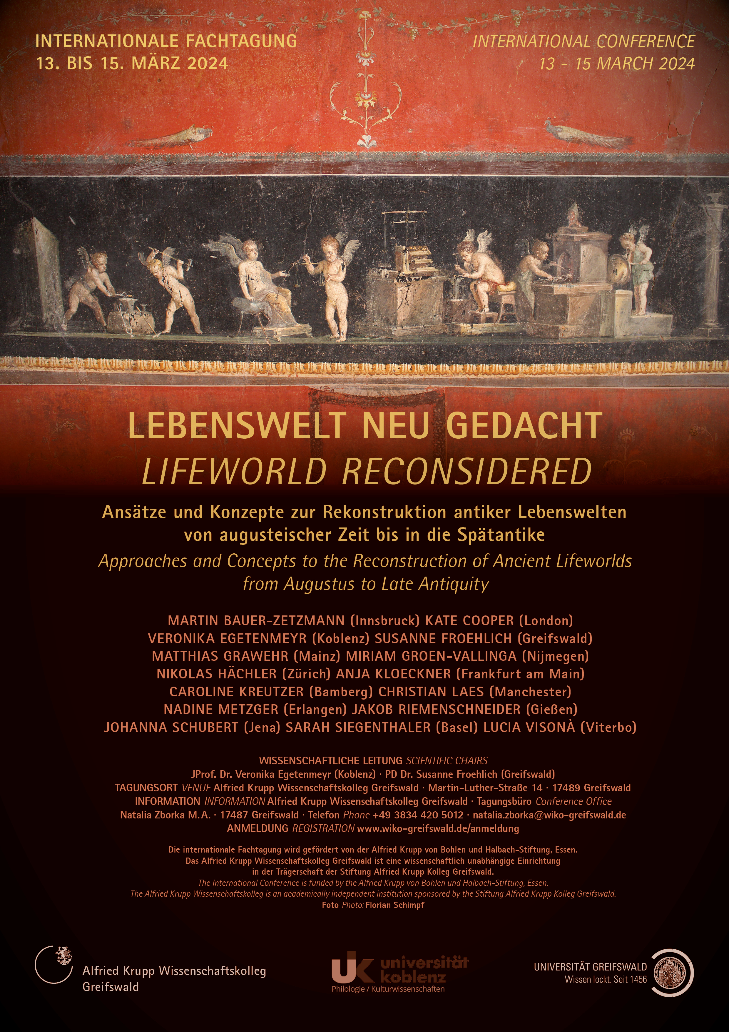 Die internationale Tagung zur Rekonstruktion antiker Lebenswelten von der augusteischen Zeit bis in die Spätantike bringt theoretisch forschende Altertumswissenschaftler:innen aus verschiedenen Disziplinen zusammen, um den Begriff der Lebenswelt für die römische Antike neu zu denken und damit neue Perspektiven auf die römische Zeit zu eröffnen.