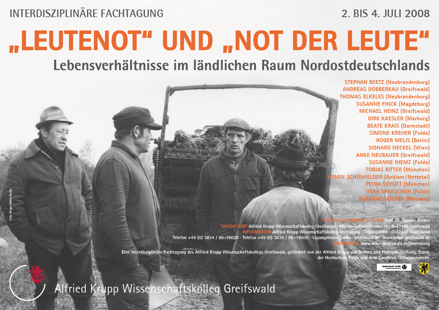 „Leutenot“, wie der Mangel an Arbeitskräften gewöhnlich genannt wurde, war eines der zentralen Probleme der ländlichen Regionen in Ostelbien während der zweiten Hälfte des 19. Jahrhunderts. Verursacht wurde die „Leutenot“ durch die Auswanderung nach Übersee, durch die Abwanderung in die Städtemit ihren neu entstehenden industriellen Arbeitsmöglichkeiten und durch die Veränderung der Wirtschaftsstrukturen auf dem Lande selbst.Wie es um die „Not der Leute“ in Nordostdeutschland bestellt war und heute noch ist, soll die Tagung aus der Perspektive unterschiedlicher Disziplinen beleuchten. Aktuelle Forschungsergebnisse zu prekären Lebenslagen im ländlichen Raum Ostvorpommerns werden eine interdisziplinäre Diskussion der Lebensverhältnisse sowie der Chancen und Restriktionen der Lebensführung in sozialen Räumen ermöglichen, deren Bevölkerung schrumpft. Historiker, Soziologen, Sozialgeographen, Sozial-, Kultur- und Geisteswissenschaftler sowie Praktiker und die interessierte Öffentlichkeit aus der Region sind herzlich dazu eingeladen, die Entwicklung der Lebensverhältnisse in Ostvorpommern seit den großen Untersuchungen, nach den Zäsuren des letzten Jahrhunderts und im Hinblick auf zukünftige Entwicklungen zu diskutieren.