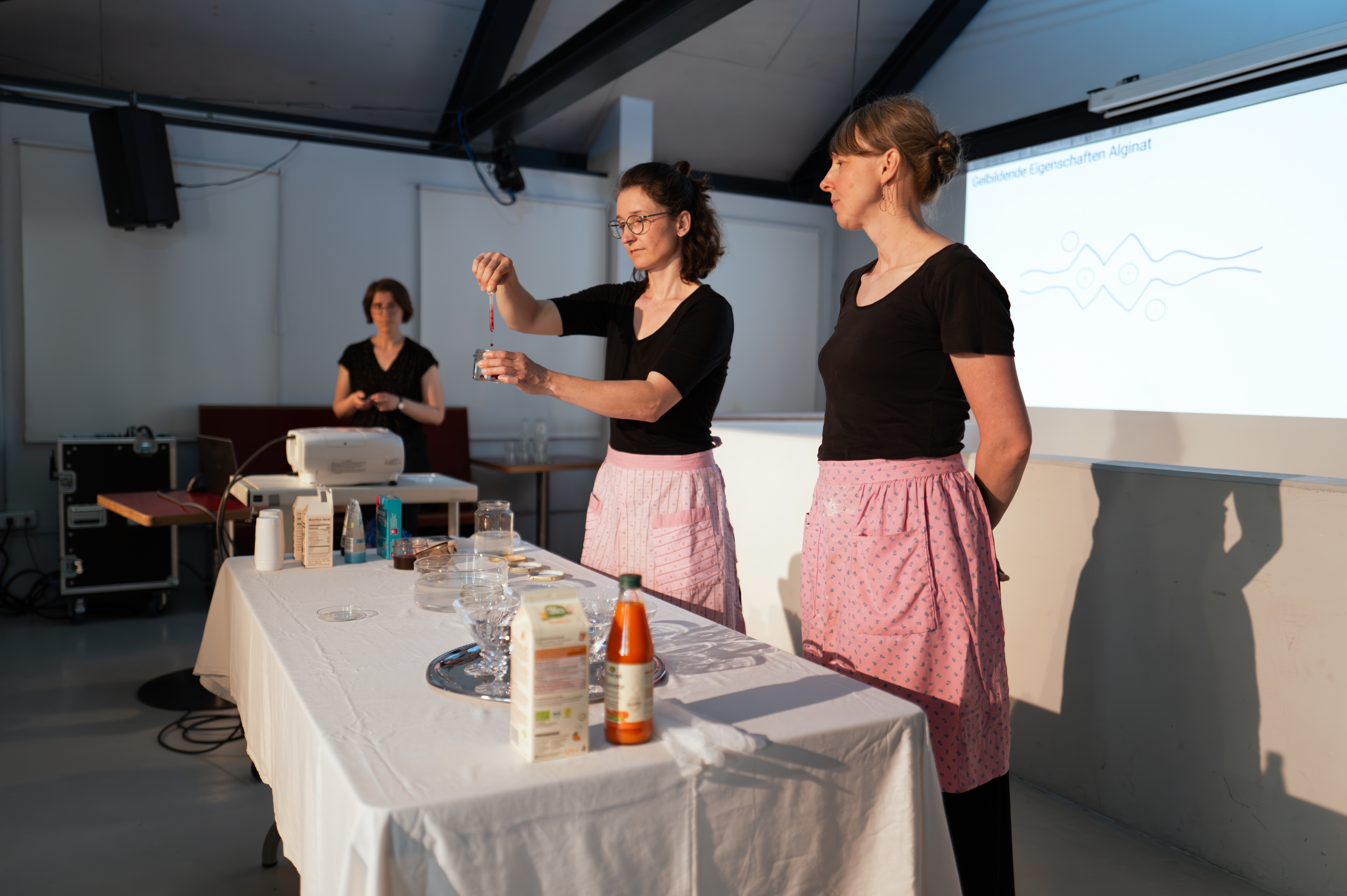 In der Ausstellung werden Ergebnisse aus der Kooperation zwischen der Mikrobiologin Dr. Marie-Katherin Zühlke und den Künstlerinnen Astrid Brünner und Susanne Gabler präsentiert. Mit diesem Vorhaben möchten die Akteurinnen für die aktuelle Situation der Meeresgewässer sensibilisieren und Impulse für einen bewussteren Umgang damit setzen. Die künstlerisch wissenschaftliche Forschung bezieht sich dabei unter anderem auf die Inhalte des DFG-geförderten Transregio-Projektes „Carbon sequestration at Å resolution - CONCENTRATE“ der Universitäten Greifswald und Bremen. Mit unterschiedlichen Medien nähern sich die Kooperationspartnerinnen dem Ausstellungsthema und verweisen in den Arbeiten auf die Komplexität von Umwandlungsprozessen in marinen Ökosystemen. Die Ausstellungsstücke entstanden in einem sich fortsetzendem Prozess des interdisziplinären Austauschs seit 2023. Darunter sind Werke aus den Bereichen Druck, Malerei, WordArt und Performance.
