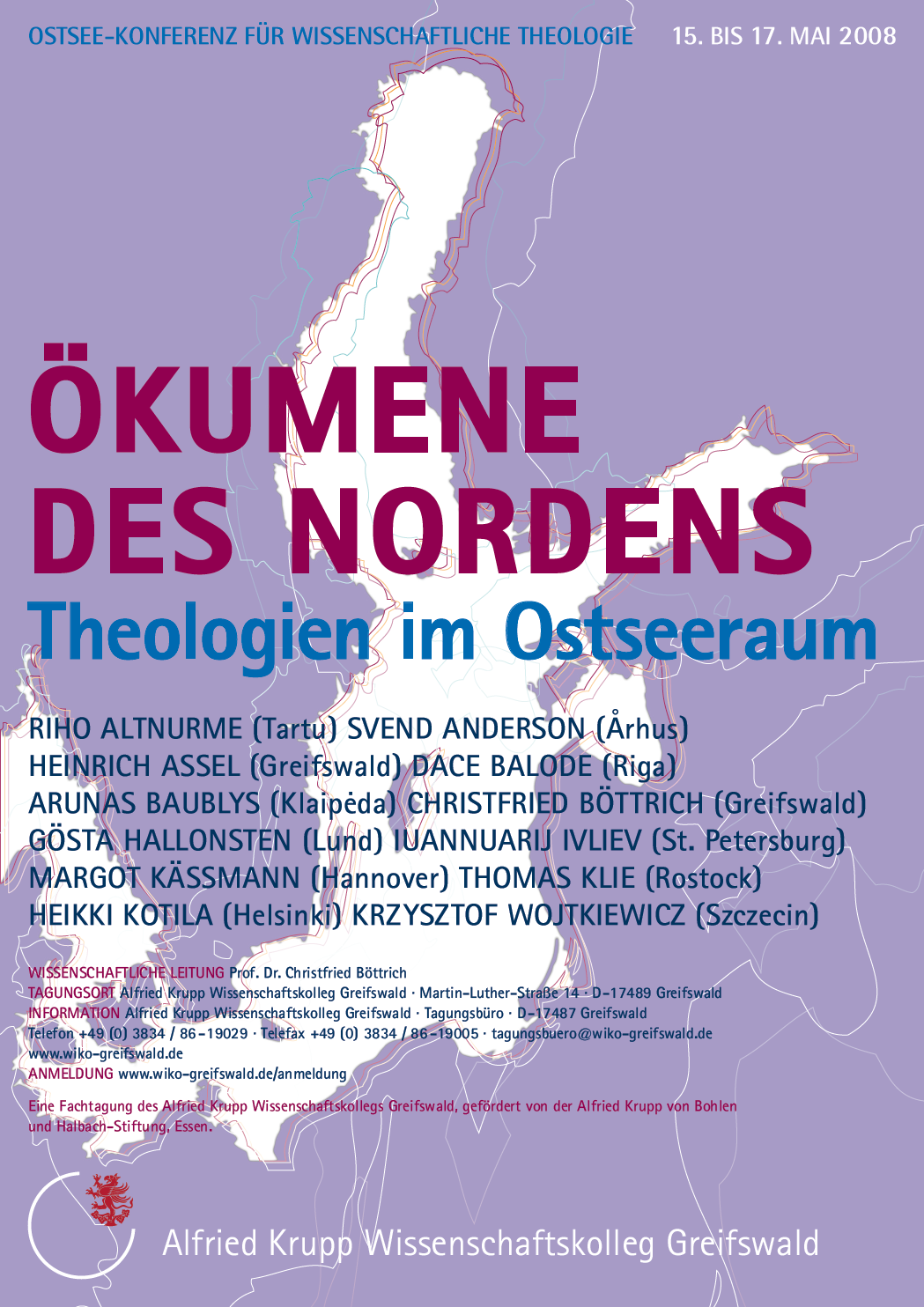 Die Greifswalder Ostsee-Konferenz für wissenschaftliche Theologie versammelt zum ersten Mal nach den politischen und gesellschaftlichen Umbrüchen in Osteuropa die theologischen Fakultäten der „Kontaktzone Mare balticum“ an einem Ort. Dabei geht es zunächst um eine Standortbestimmung im Hinblick auf jene Transformationsprozesse, denen die Arbeit der wissenschaftlichen Theologie in ihren jeweiligen Kontexten in den letzten fünfzehn Jahren unterworfen gewesen ist. Das Stichwort „Ökumene“ trägt dabei der Tatsache Rechnung, dass im Ostseeraum seit der Reformation die Traditionen lutherischer, katholischer und orthodoxer akademischer Ausbildung nebeneinander bestehen und vielfach aufeinander bezogen sind. Im Plural der „Theologien” ist die Bandbreite abgebildet, die nicht nur das interkonfessionelle, sondern auch das innerkonfessionelle Spektrum der Theologie aufweist. Die Greifswalder Ostsee-Konferenz für wissenschaftliche Theologie nimmt eine alte Tradition auf — jedoch auf der Basis einer völlig neuen Konzeption. Ermittelt werden sollen die Perspektiven einer künftigen Zusammenarbeit der theologischen Fakultäten im Ostseeraum, die auf aktuelle Problemstellungen unmittelbar zu reagieren vermag.