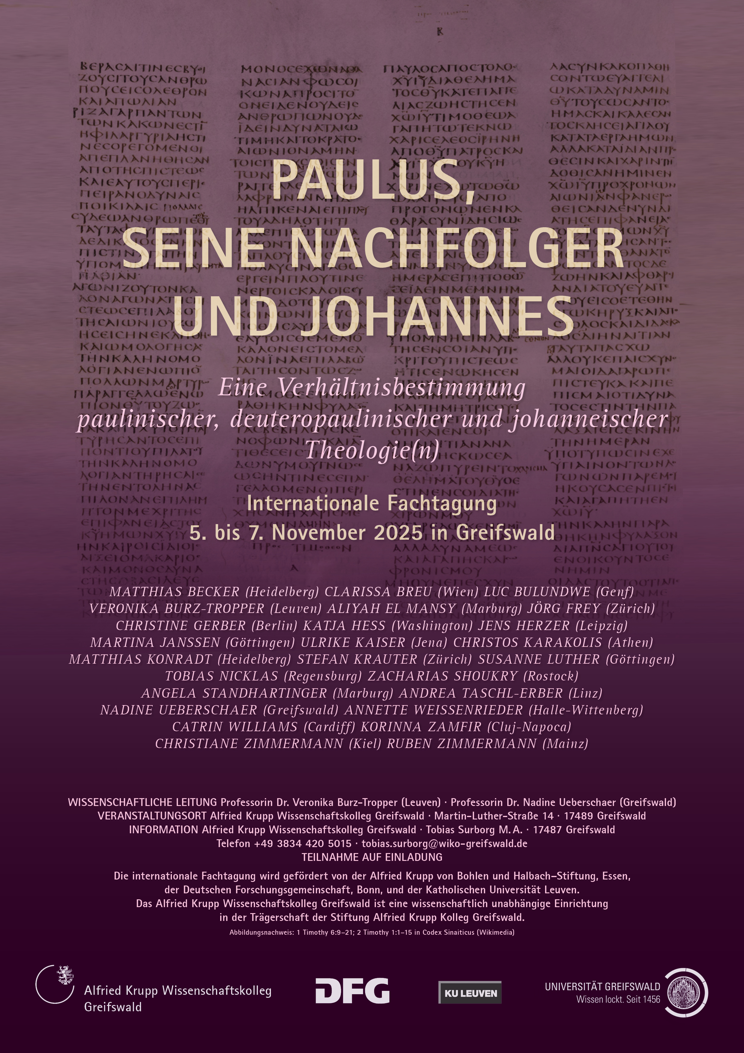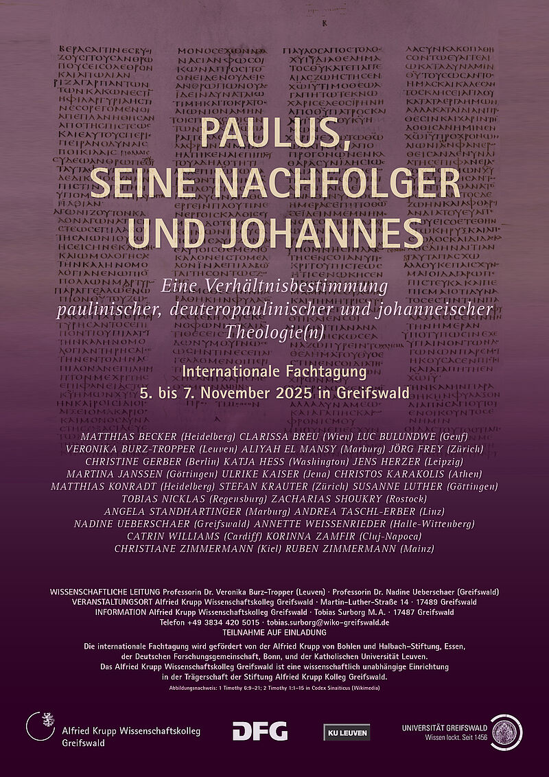 Mit einer Verhältnisbestimmung und einem Vergleich zentraler theologischer Themen der Paulusbriefe, der Deuteropaulinen sowie des Johannesevangeliums betritt diese Tagung Neuland. Das betrifft sowohl eine Zuordnung der paulinischen und johanneischen Theologie als auch in besonderer Weise die Zusammenschau aller drei Schriftenkorpora – und dies trotz zahlreicher terminologischer und motivischer Übereinstimmungen sowie analoger theologischer Konzeptionen. Anhand ausgewählter Themen werden Entwicklungslinien und Diskurszusammenhänge offengelegt, die die Geschichte des frühen Christentums maßgeblich bestimmt haben. Ziel der Tagung ist eine Zuordnung der genannten Schriftenkorpora, sodass zugleich ein Beitrag zur Theologie- und Literaturgeschichte des frühen Christentums und des Neuen Testaments geleistet wird.