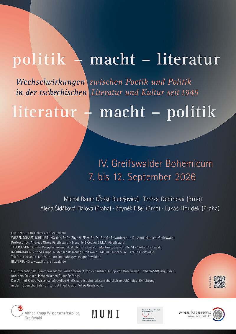 Politik und Kunst stehen in einer engen Wechselbeziehung zueinander. In den ehemals sozialistischen Ländern Ost- und Ostmitteleuropas manifestiert sie sich in der Nachkriegszeit zunächst vor allem in staatlichen Eingriffen in den Kulturbetrieb, nach der Wende dann in erster Linie in der Thematisierung relevanter gesellschaftspolitischer Themen. Beide Aspekte werden in der bohemistischen Sommerschule behandelt: zum einen die kultursoziologischen Besonderheiten und ihre Auswirkungen auf Literatur und Film in der Tschechoslowakei nach 1945, zum anderen die Auseinandersetzung mit brisanten Fragen der Gegenwart in Literatur und bildender Kunst: Holocaust und Vertreibung, Erinnerungskultur, Gleichstellung sowie die Ökoproblematik, auf der ein Schwerpunkt liegen wird.