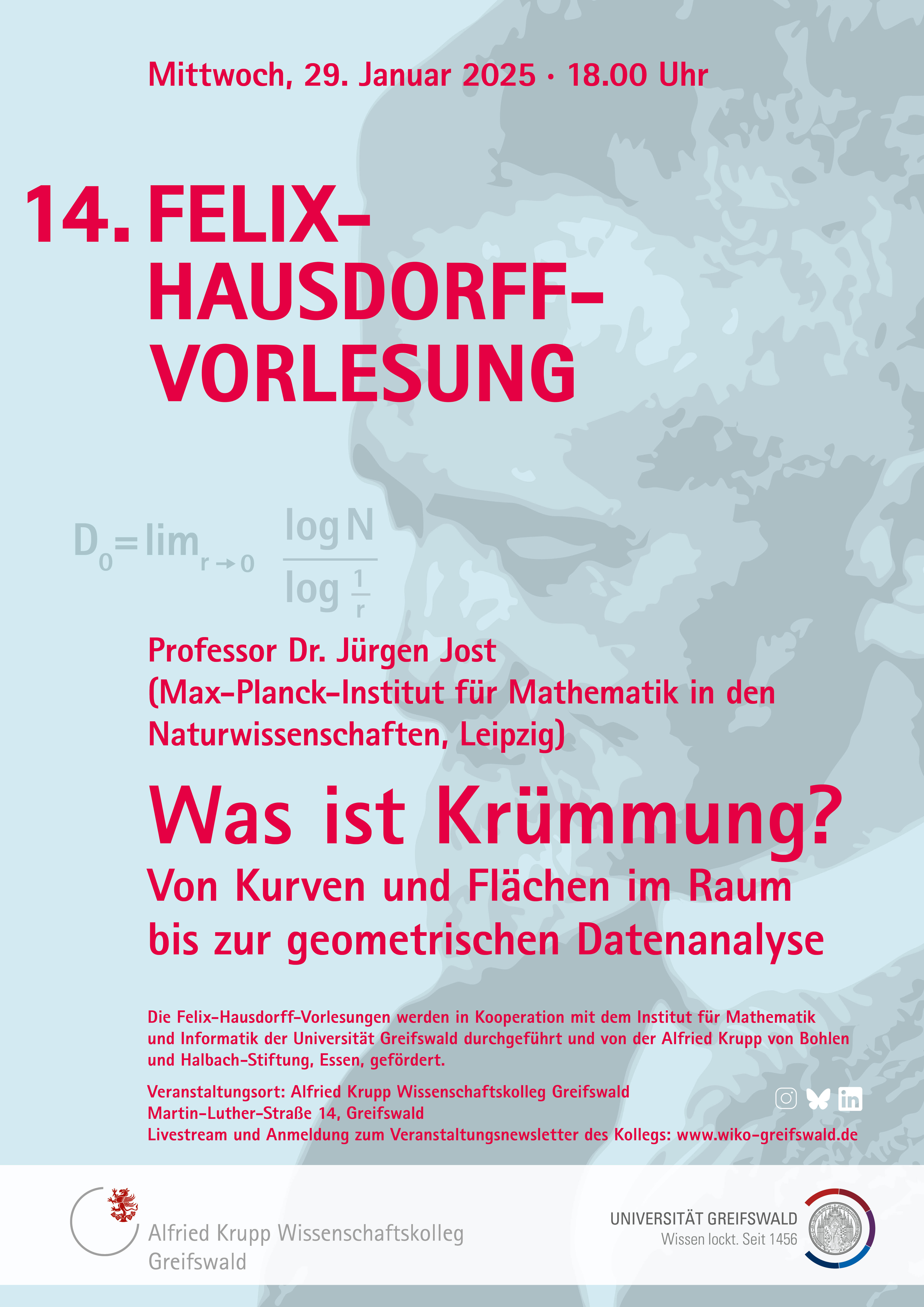 Nach dem Studium der Mathematik, Physik, Volkswirtschaftslehre und Philosophie und der Promotion 1980 war Jürgen Jost von 1984-1996 Professor für Mathematik an der Ruhr-Universität Bochum. 1996 wurde er Gründungsdirektor des Max-Planck-Institutes für Mathematik in den Naturwissenschaften in Leipzig. Er ist Mitglied der Leopoldina, der Akademie der Wissenschaft und Literatur in Mainz und der Sächsischen Akademie der Wissenschaften. 1993 erhielt er den Leibnizpreis der DFG.