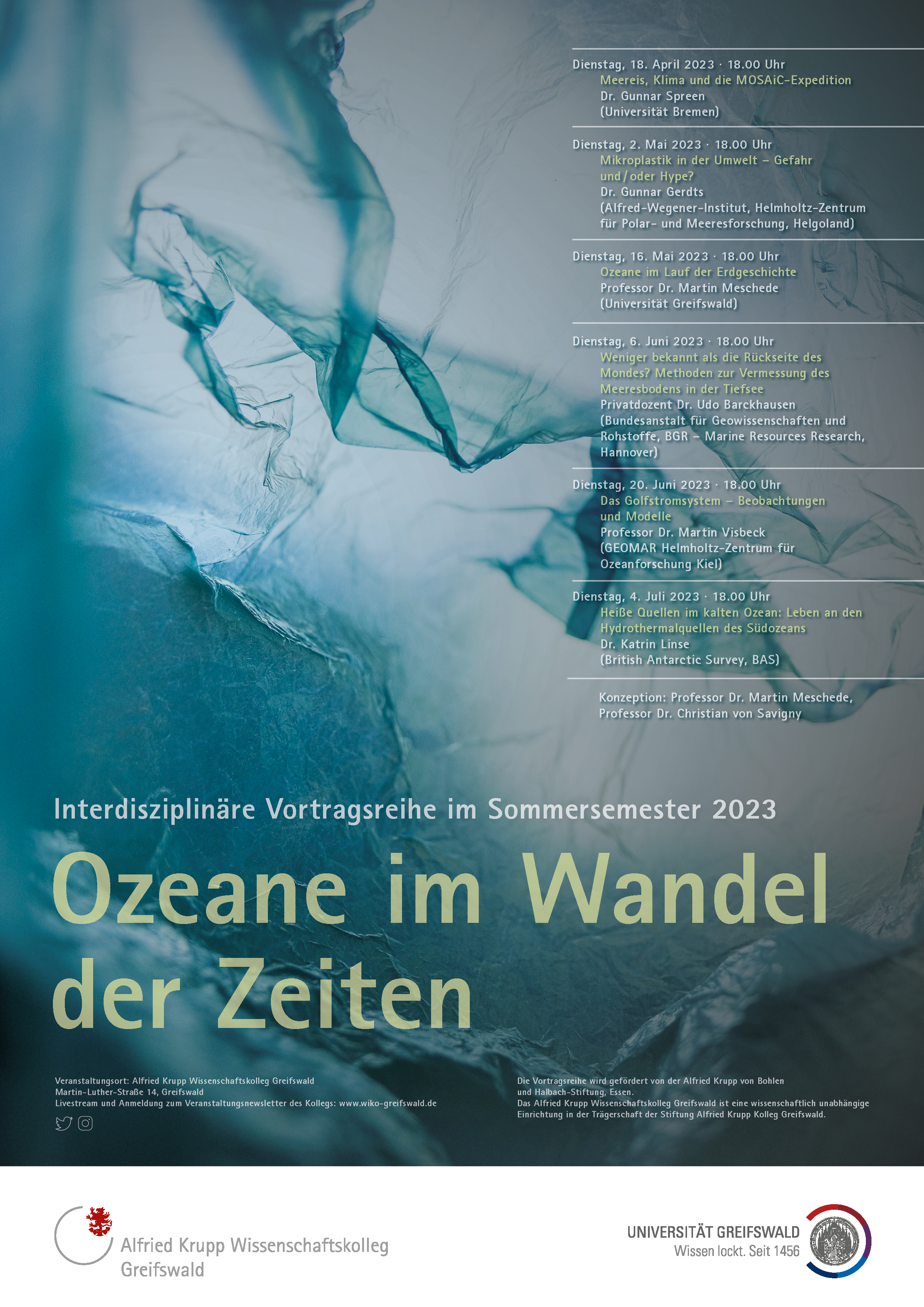 Die Ozeane bedecken mehr als 2/3 der Erdoberfläche und sie sind im Durchschnitt mehr als 4000 m tief. Das Wasser ist für Licht und andere elektromagnetische Wellen weitgehend undurchlässig, das macht es sehr schwierig, sie flächenhaft mit guter Genauigkeit zu kartieren. Im Vortrag werden verschiedene Methoden der Meeresbodenvermessung mit Satelliten, Forschungsschiffen und Tauchrobotern vorgestellt, die mit verschiedenen Methoden auf ganz unterschiedlichen Größenskalen arbeiten. Dabei gilt der Grundsatz: Je höher die angestrebte Genauigkeit im Detail, desto kleiner sind die kartierten Flächen, desto faszinierender sind aber auch die Ergebnisse.