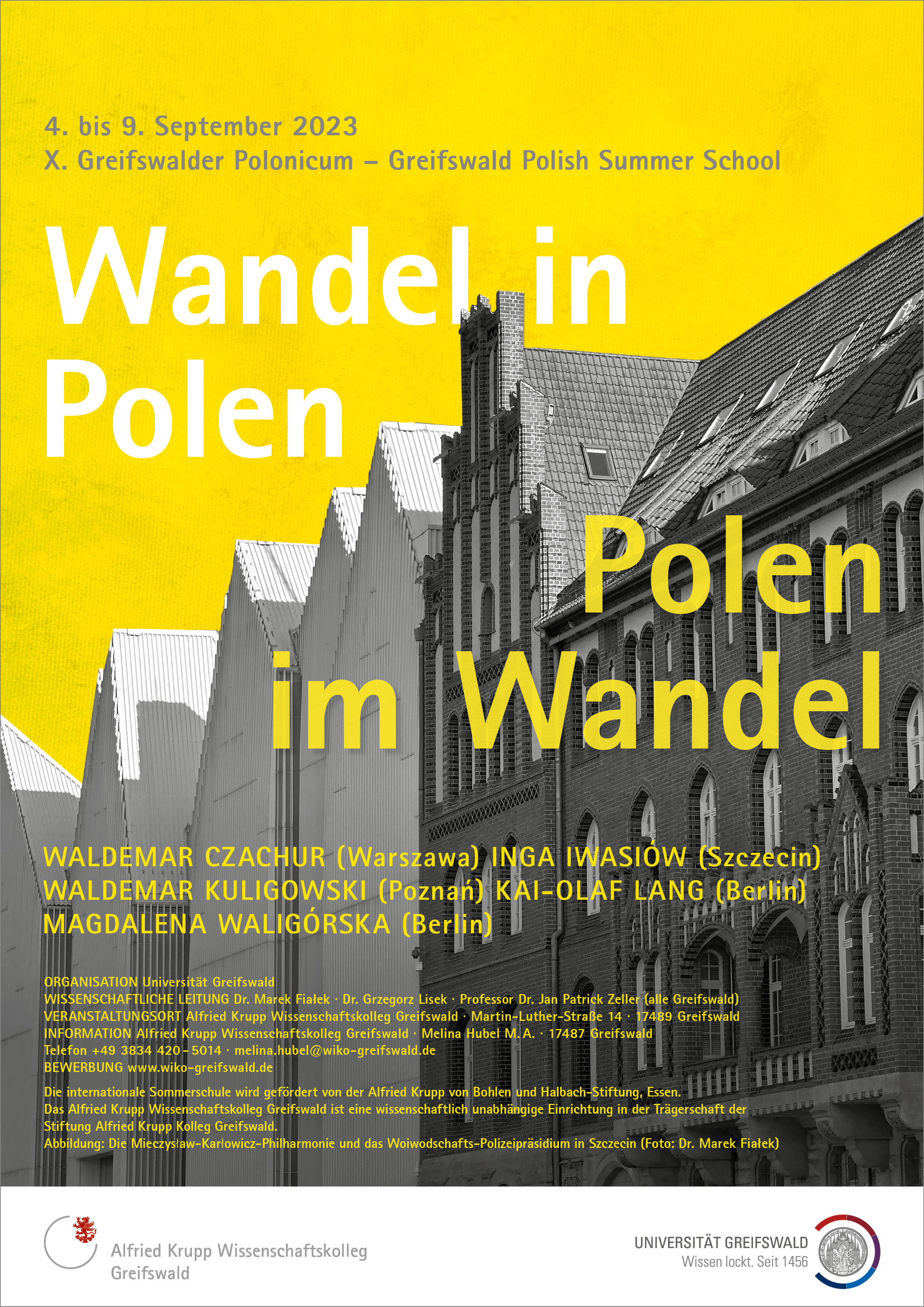 Anlässlich seines zehnten Jubiläums richtet das diesjährige Polonicum unter dem Thema „Wandel“ einen umfassenden Blick auf die gegenwärtigen Prozesse in unserem Nachbarland Polen. Die einschneidenden Ereignisse der letzten Jahre – Streit um Rechtsstaatlichkeit, Frauenrechte, Klimakrise, Pandemie, der Angriff der Russischen Föderation auf die Ukraine und die Aufnahme von vielen Geflüchteten aus dem Nachbarland – bestimmen den öffentlichen Diskurs in Polen und trugen zur Spaltung der Gesellschaft bei. Im Rahmen von drei Seminaren und Abendvorträgen werden gegenwärtige und teils gegenläufige Wandelphänomene in der polnischen Gesellschaft und Politik und ihre Wechselwirkungen mit Literatur, Kultur und Sprache beleuchtet.