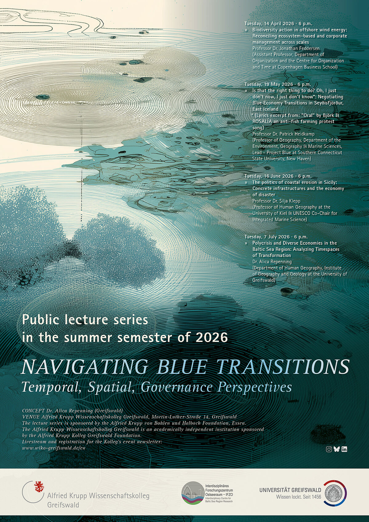 The lecture series brings together temporal, spatial, ecological, economic, and societal dimensions to foster a deeper understanding of the dynamics and tensions inherent in blue transitions. It demonstrates that blue transitions entail not only challenges but also opportunities—to develop new governance models through dialogue, to expand room for action, and to translate scientific knowledge into practice.